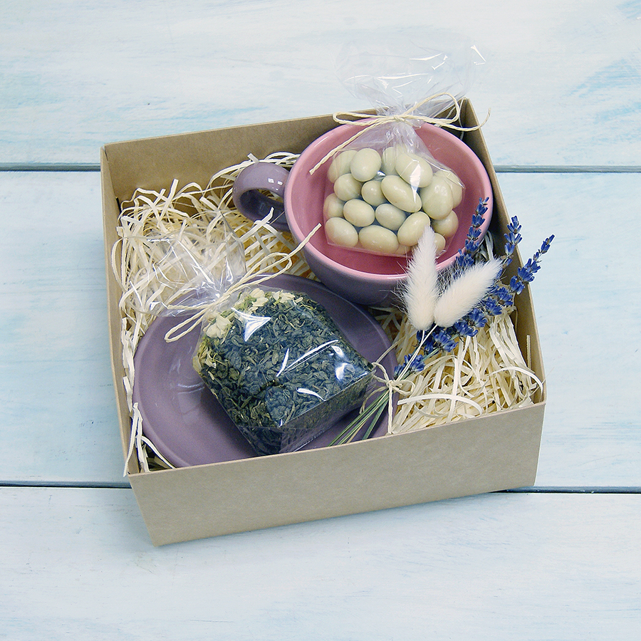 - подарочная коробка с наполнителем и декором (размер коробки 19*19*8 см).