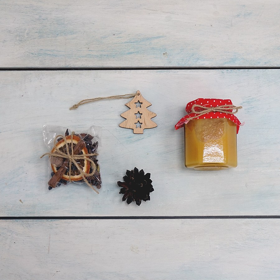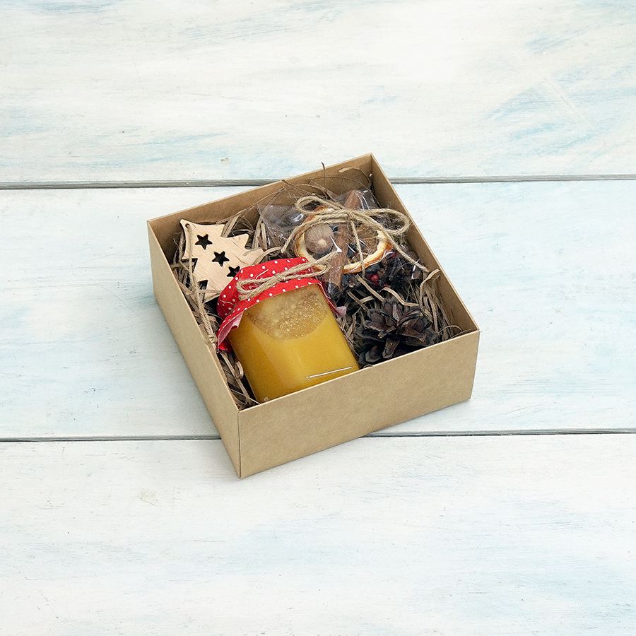 - подарочная коробка с наполнением и декором (размер коробки 15*15*7 см.).