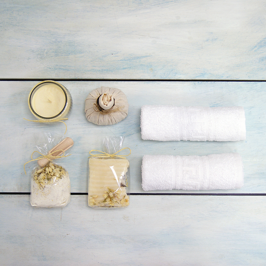 - соль для ванной с сухим молоком и лепестками жасмина (250 грамм);