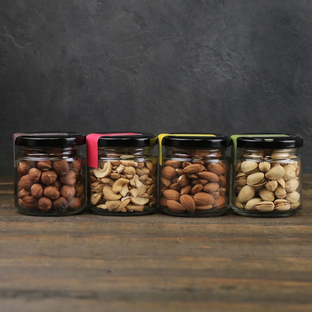 - фундук 100 гр в стеклянной банке;