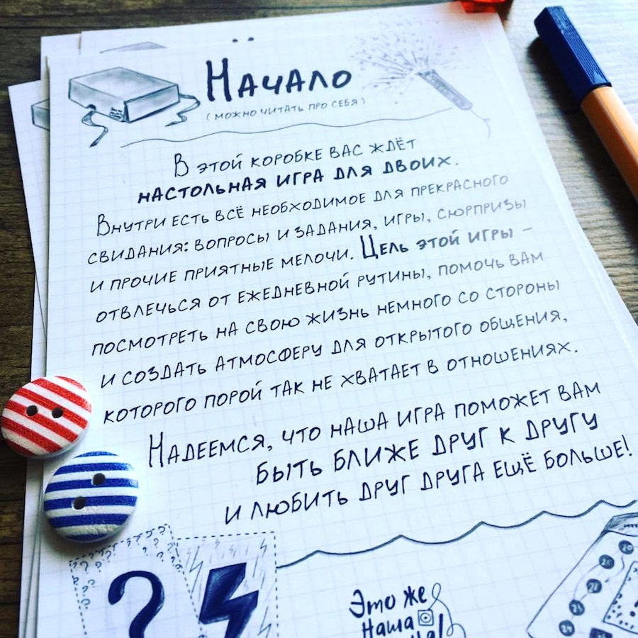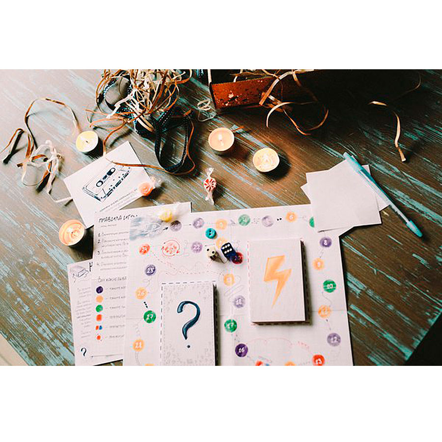 Игровой процесс прост: бросаете кубик - двигаете фишку по игровому полю - тянете выпавшую карточку. Вам предстоит отвечать на самые разные вопросы, фантазировать, ностальгировать, делиться переживаниями, планировать ближайшее и далёкое будущее, проявлять неожиданные таланты - в общем, заскучать не удастся:)